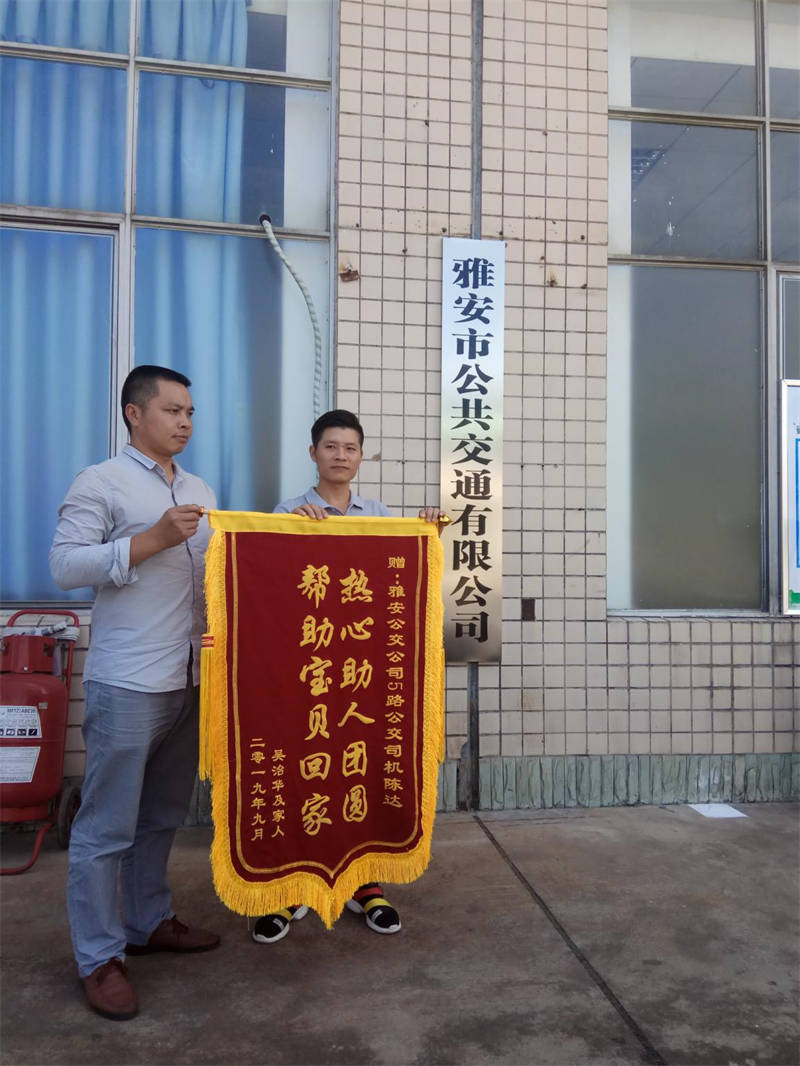 正是由于陳達(dá)細(xì)致耐心的服務(wù)和面對突發(fā)事件的沉穩(wěn)冷靜,避免了該起兒童走失事件發(fā)展成更大的悲劇,挽救 了一個家庭。920日,為了表達(dá)感激之情,男童的父親吳治華來到公交公司將一面寫有“熱心助人團(tuán)圓,幫助寶貝回家”的錦旗送到了陳達(dá)手上。