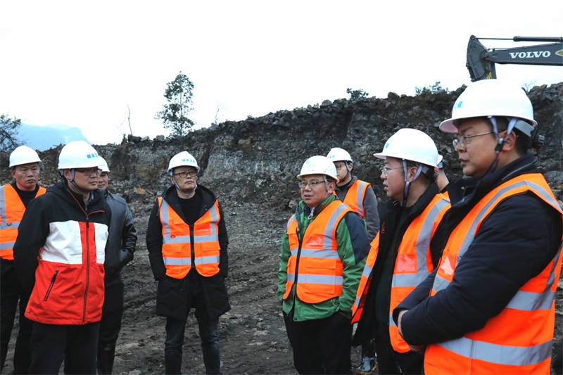 隨后,檢查組乘車前往天全魚泉鄉(xiāng)丹石礦山首采平臺(tái)。丹石公司負(fù)責(zé)人匯報(bào),礦山存儲(chǔ)量可供開采十余年,目前已經(jīng)初步解決棄土矛盾,基本可以實(shí)現(xiàn)量產(chǎn)。聽完現(xiàn)場匯報(bào),大家切實(shí)感受到礦山開采工作的艱辛,又為集團(tuán)豐富的“家底”而信心倍增。