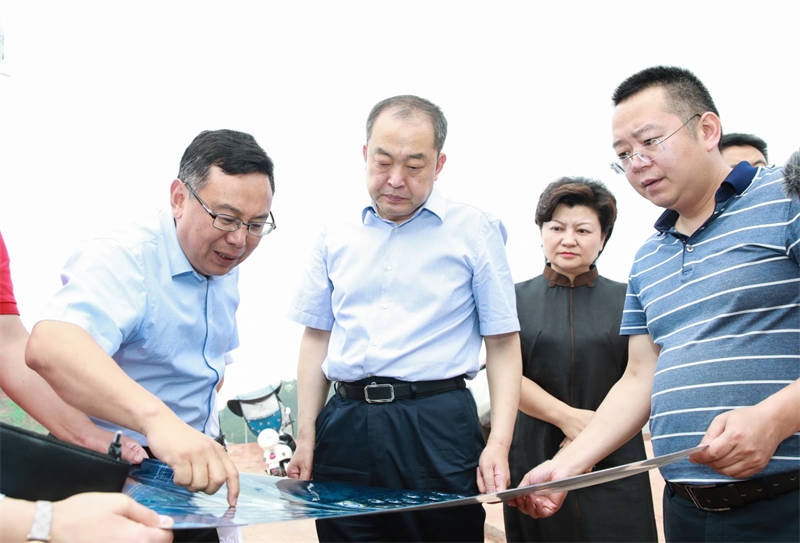 在雅安無水港鳳鳴物流園項(xiàng)目場平施工現(xiàn)場,蘭開馳聽取了項(xiàng)目業(yè)主交建集團(tuán)黨委書記、董事長漆家華的工作匯報(bào),詳細(xì)了解無水港物流項(xiàng)目規(guī)劃、建設(shè)進(jìn)展、業(yè)態(tài)布局等情況。