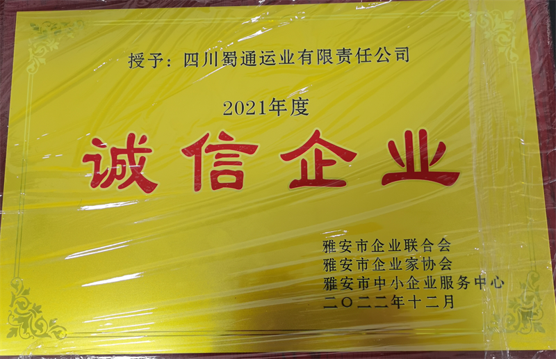 近日,蜀通公司被雅安市企業(yè)聯(lián)合會、雅安市企業(yè)家協(xié)會、雅安市中小企業(yè)服務(wù)中心授予“雅安市2021年度誠信企業(yè)”榮譽(yù)稱號。