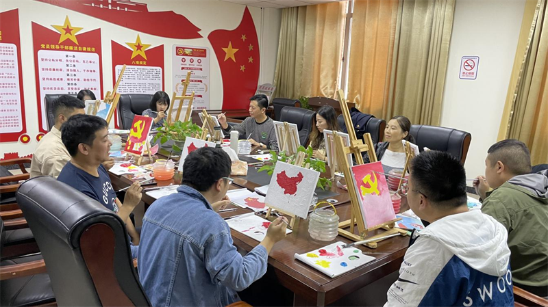 活動中,大家興致勃勃地領(lǐng)取了畫筆、顏料、油畫框等工具,即刻投入到繪畫狀態(tài)中。他們一筆一劃仔細(xì)斟酌、認(rèn)真構(gòu)思,充分發(fā)揮想象,通過精心的布局、豐富的色彩,繪出自己熱愛黨的心聲,勾勒出紅色印記,用色彩點(diǎn)燃愛國情懷,為迎接黨的二十大勝利召開獻(xiàn)上一份真摯的祝福。