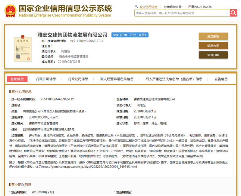 雅安交建集團(tuán)無水港物流有限責(zé)任公司完成工商變更登記工作