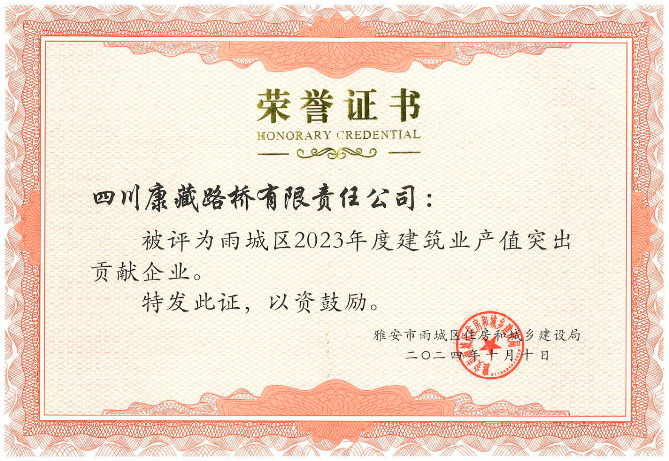 今年10月,路橋公司被雅安市雨城區(qū)住房和城鄉(xiāng)建設(shè)局評(píng)為“雨城區(qū)2023年度建筑業(yè)產(chǎn)值突出貢獻(xiàn)企業(yè)”。下一步,路橋公司將持續(xù)貫徹落實(shí)市委、市政府決策部署,把學(xué)習(xí)貫徹落實(shí)黨的二十大精神與生產(chǎn)經(jīng)營工作結(jié)合起來,發(fā)揮項(xiàng)目引領(lǐng)支撐作用,為地方經(jīng)濟(jì)的發(fā)展持續(xù)貢獻(xiàn)力量。