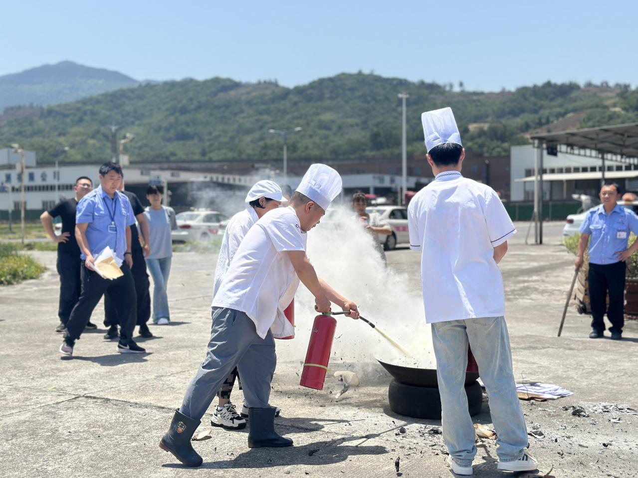 正式演練前,公司副總經(jīng)理鄭循禮講述了“防災(zāi)減災(zāi)日”的由來,傳授了防震避難、防火防電、防洪防汛等方面的基本知識(shí),專業(yè)人員對(duì)消防器材使用方式進(jìn)行了教學(xué),并組織廚師、安全部重點(diǎn)人員模擬起火現(xiàn)場(chǎng),“零距離”體驗(yàn)消防護(hù)具。隨后,開展地震應(yīng)急演練,在模擬地震的預(yù)警信號(hào)發(fā)出后,全體職工運(yùn)用學(xué)習(xí)的避震知識(shí),雙手抱頭、蜷縮身體、降低重心,快速有序撤離室內(nèi)到達(dá)戶外安全區(qū)域。