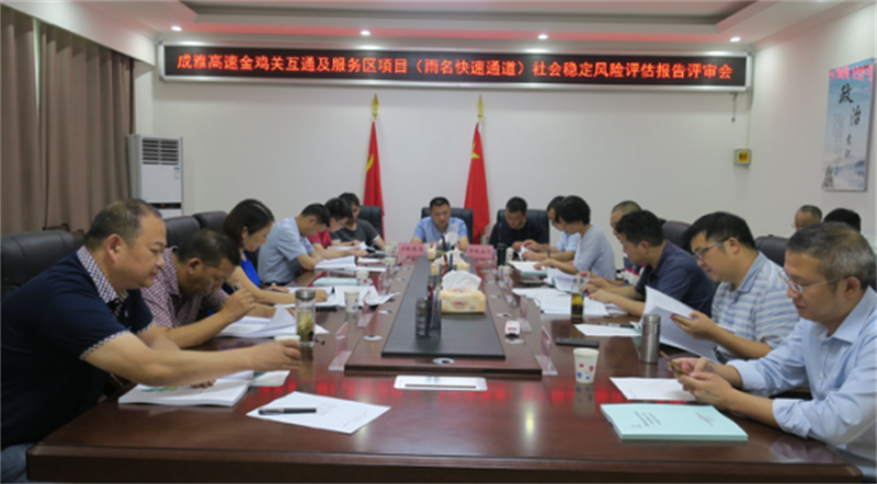 2018年7月6日下午,雅安市交通運(yùn)輸局在交建集團(tuán)四樓會議室組織召開了《成雅高速金雞關(guān)互通及服務(wù)區(qū)項(xiàng)目(雨名快速通道)社會穩(wěn)定風(fēng)險(xiǎn)評估報(bào)告》(以下簡稱《報(bào)告》)專家評審會。雨城區(qū)政府、名山區(qū)政府、經(jīng)開區(qū)管委會、市委維穩(wěn)辦、市農(nóng)業(yè)局、市林業(yè)局、市住建局、市環(huán)保局、市水務(wù)局、市國土局、雅安交建集團(tuán),相關(guān)鄉(xiāng)鎮(zhèn)(街道)等相關(guān)部門和單位參與會議。與會專家組詳細(xì)審閱了相關(guān)文件及資料,聽取了編制單位和相關(guān)單位對該項(xiàng)目的情況介紹。