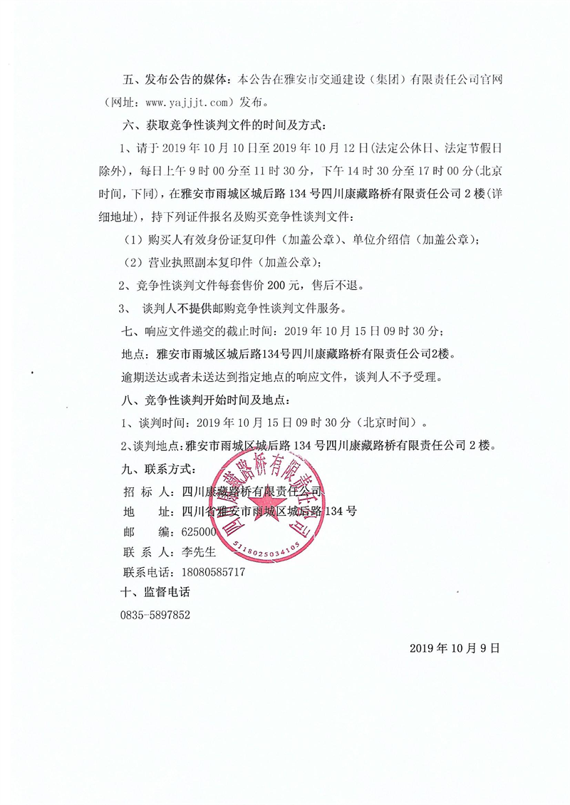 四川康藏路橋有限責(zé)任公司國(guó)道351線磽磧至夾金山段路面改造工程防護(hù)網(wǎng)采購(gòu)競(jìng)爭(zhēng)性談判公告