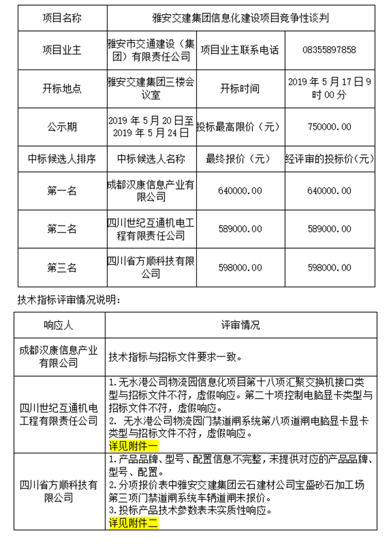 雅安交建集團(tuán)信息化建設(shè)項目競爭性談判評標(biāo)結(jié)果公示