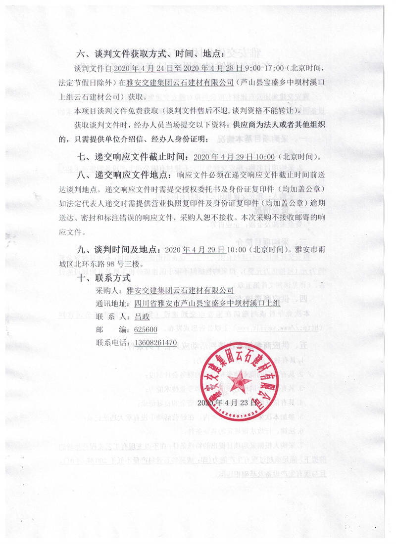 雅安交建集團云石建材有限公司生產(chǎn)設(shè)備圓錐破采購項目競爭性談判公告