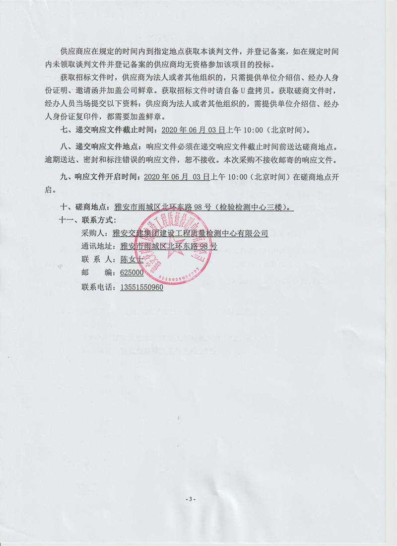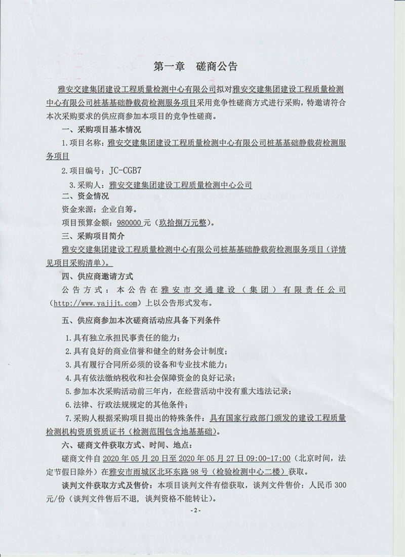 雅安交建集團建設工程質(zhì)量檢測中心有限公司樁基基礎靜載荷檢測服務采購項目競爭性磋商公告