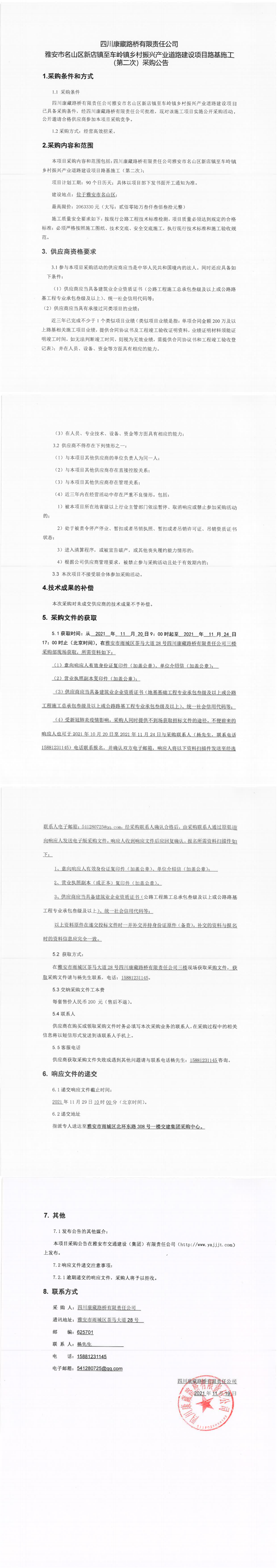 四川康藏路橋有限責任公司雅安市名山區(qū)新店鎮(zhèn)至車嶺鎮(zhèn)鄉(xiāng)村振興產(chǎn)業(yè)道路建設項目路基施工(第二次)采購公告