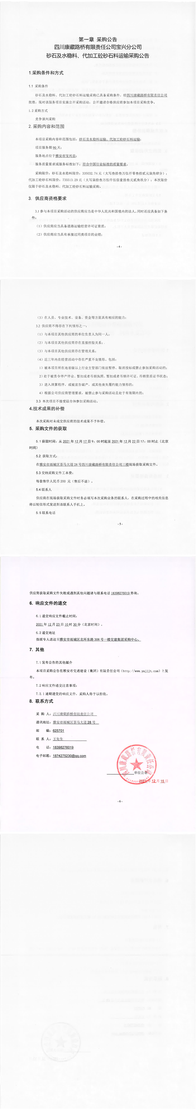 四川康藏路橋有限責(zé)任公司寶興分公司砂石及水穩(wěn)料、代加工砼砂石料運(yùn)輸采購(gòu)公告
