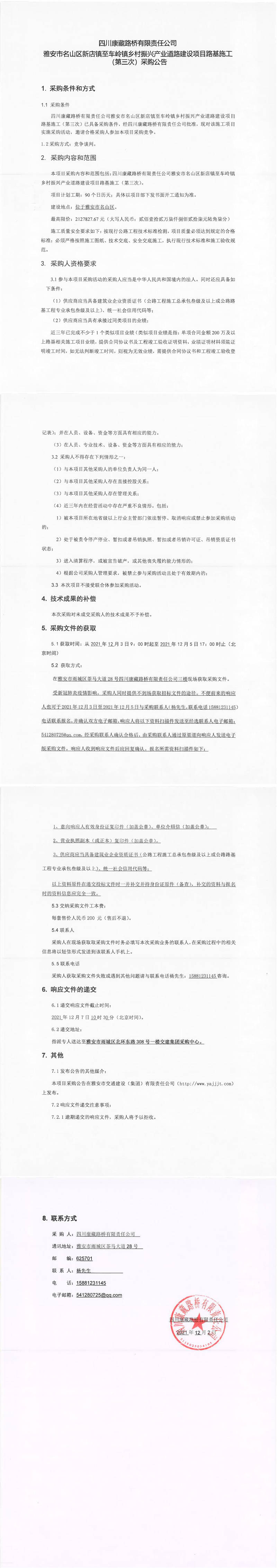 四川康藏路橋有限責(zé)任公司雅安市名山區(qū)新店鎮(zhèn)至車嶺鎮(zhèn)鄉(xiāng)村振興產(chǎn)業(yè)道路建設(shè)項目路基施工(第三次)采購公告