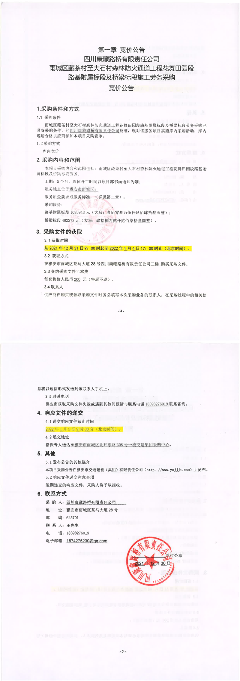 四川康藏路橋有限責(zé)任公司雨城區(qū)藏茶村至大石村森林防火通道工程花舞田園段路基附屬標(biāo)段及橋梁標(biāo)段施工勞務(wù)采購競價公告