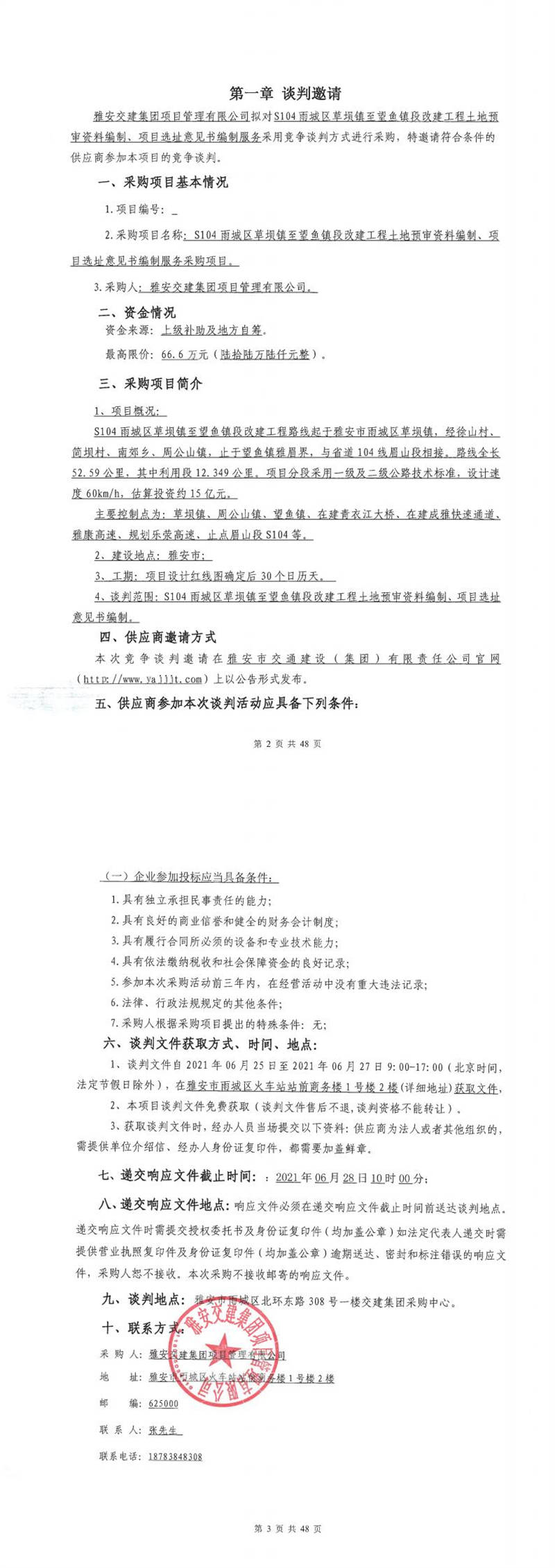雅安交建集團項目管理有限公司S104雨城區(qū)草壩鎮(zhèn)至望魚鎮(zhèn)段改建工程土地預(yù)審資料編制、項目選址意見書編制服務(wù)采購項目