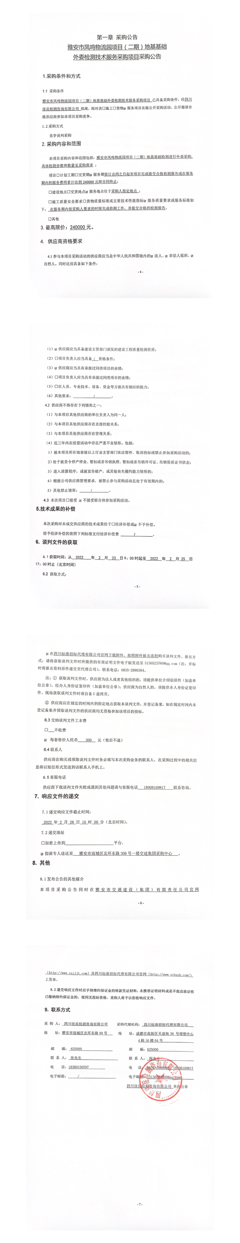 四川佳岳檢測(cè)咨詢有限公司雅安市鳳鳴物流園項(xiàng)目(二期)地基基礎(chǔ)外委檢測(cè)技術(shù)服務(wù)采購(gòu)項(xiàng)目采購(gòu)公告