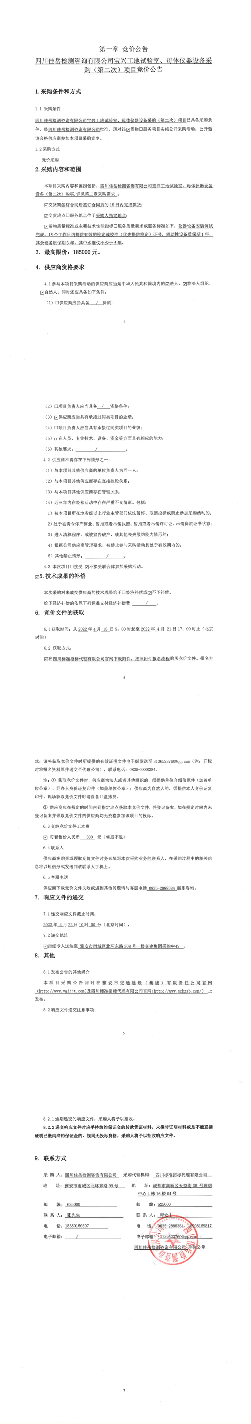 四川佳岳檢測(cè)咨詢有限公司寶興工地試驗(yàn)室、母體儀器設(shè)備采購(gòu)(第二次)項(xiàng)目競(jìng)價(jià)公告