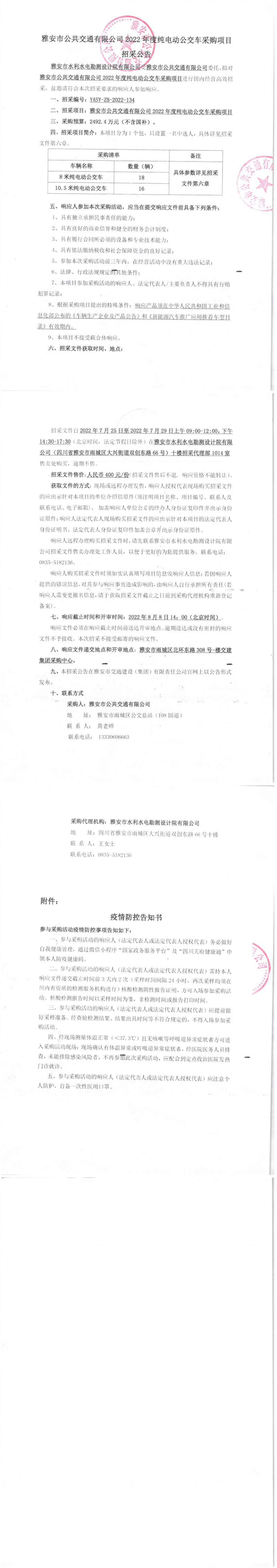 雅安市公共交通有限公司2022年度純電動(dòng)公交車采購(gòu)項(xiàng)目招采公告