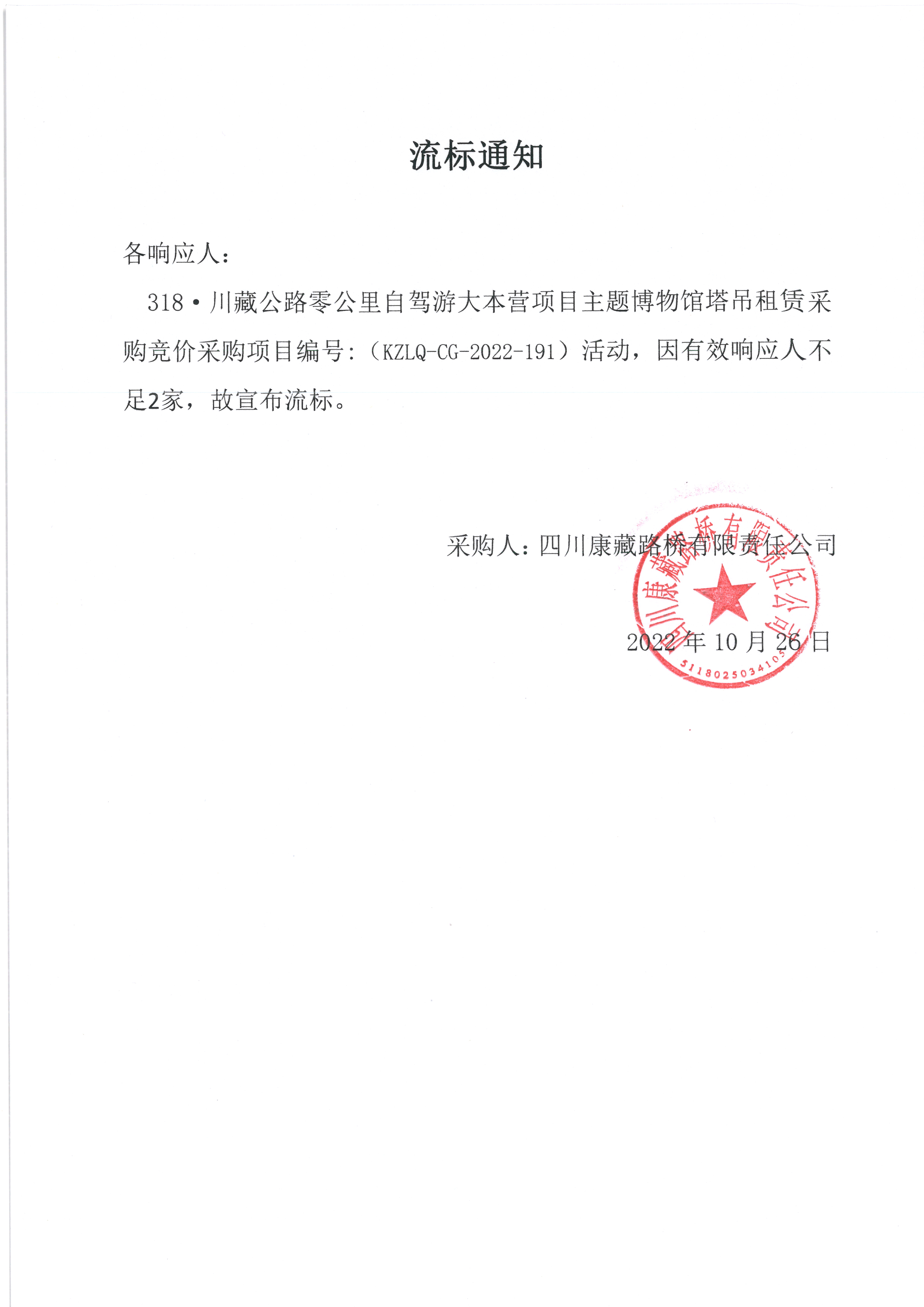 四川康藏路橋有限責(zé)任公司318·川藏公路零公里自駕游大本營項目主題博物館塔吊租賃采購流標(biāo)通知