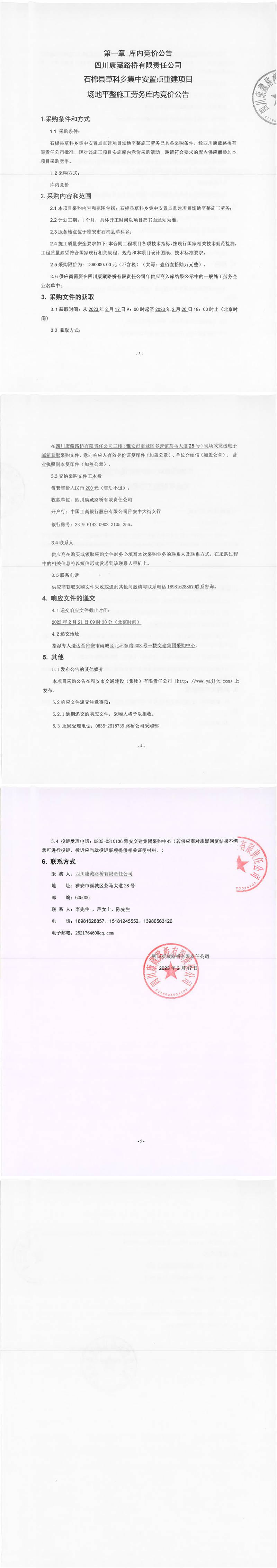 四川康藏路橋有限責(zé)任公司石棉草科鄉(xiāng)集中安置點重建項目場地平整施工勞務(wù)庫內(nèi)競價公告