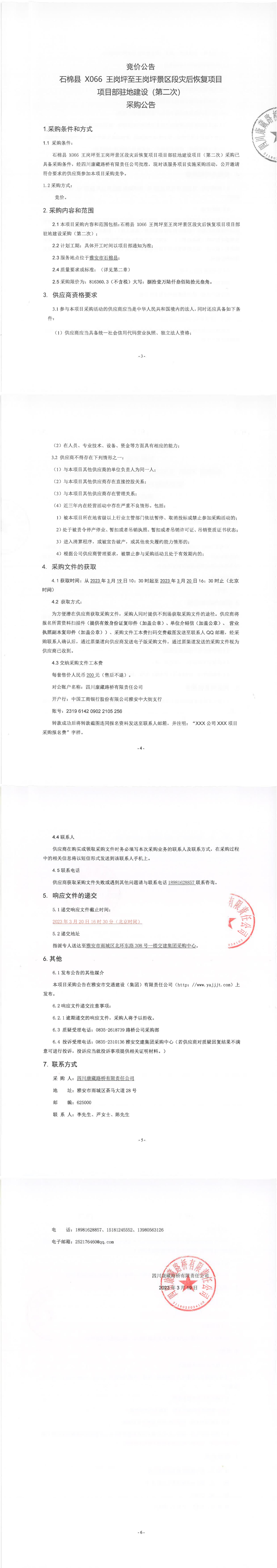 四川康藏路橋有限責(zé)任公司石棉縣X066王崗坪至王崗坪景區(qū)段災(zāi)后恢復(fù)項(xiàng)目項(xiàng)目部駐地建設(shè)(第二次)采購公告