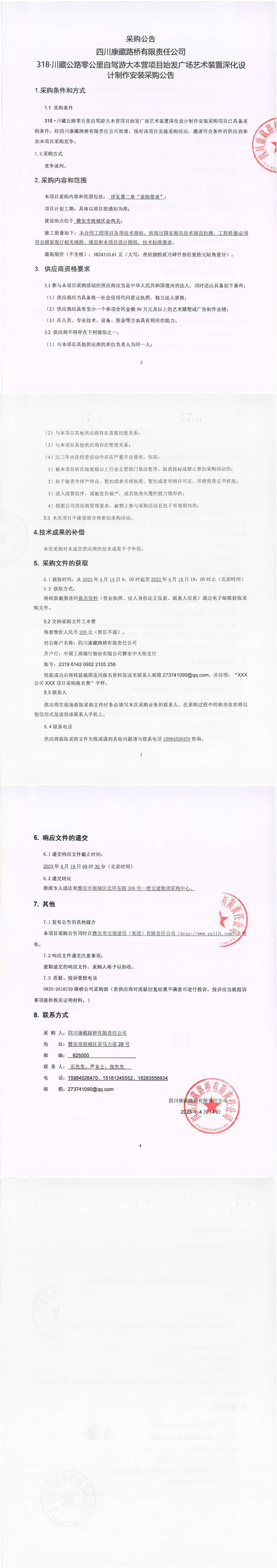 四川康藏路橋有限責(zé)任公司318·川藏公路零公里自駕游大本營項(xiàng)目始發(fā)廣場(chǎng)藝術(shù)裝置深化設(shè)計(jì)制作安裝采購公告