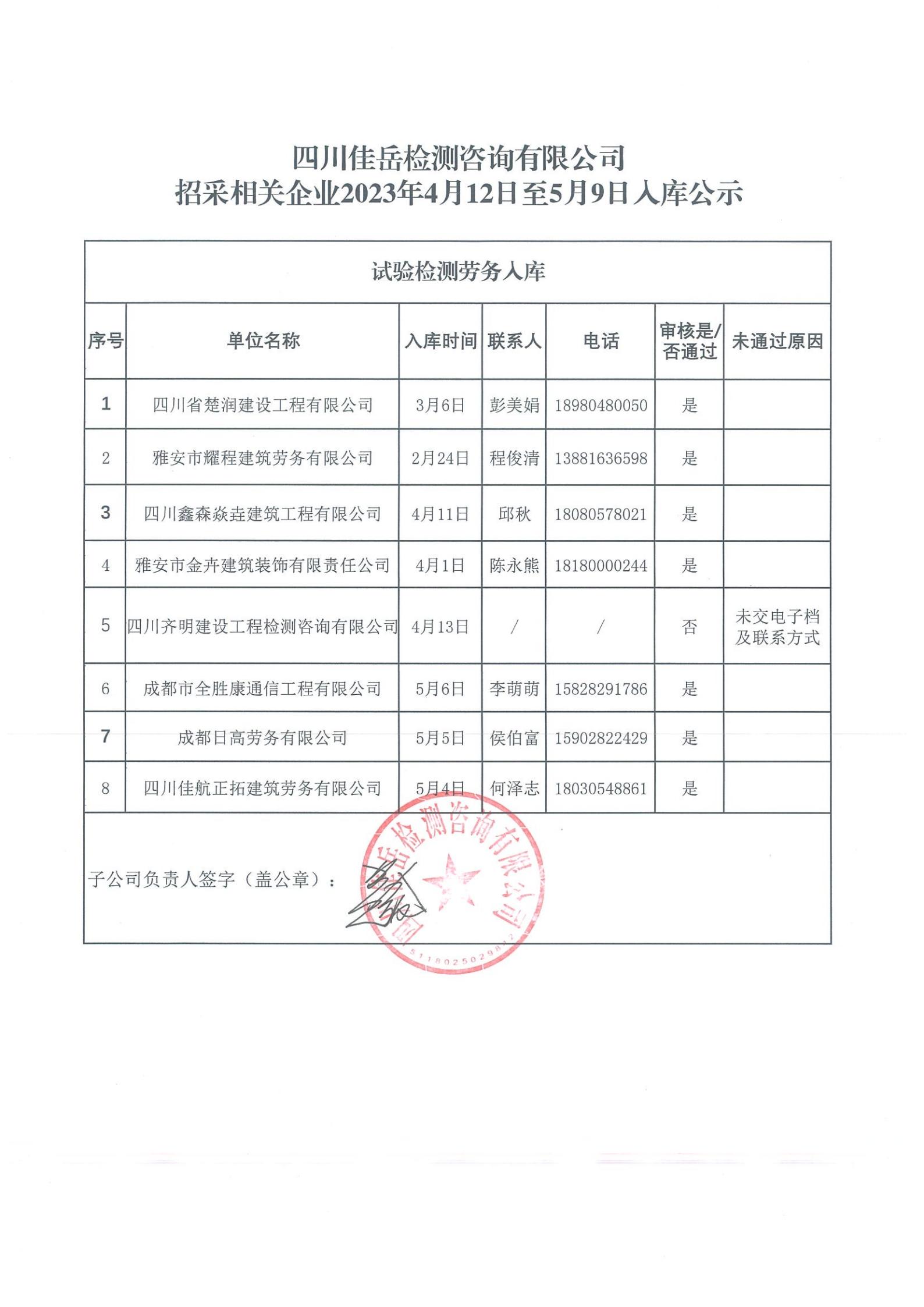 四川佳岳檢測(cè)咨詢有限公司(試驗(yàn)檢測(cè)勞務(wù)供應(yīng)商庫(kù))2023年4月12日至5月9日入庫(kù)結(jié)果公示