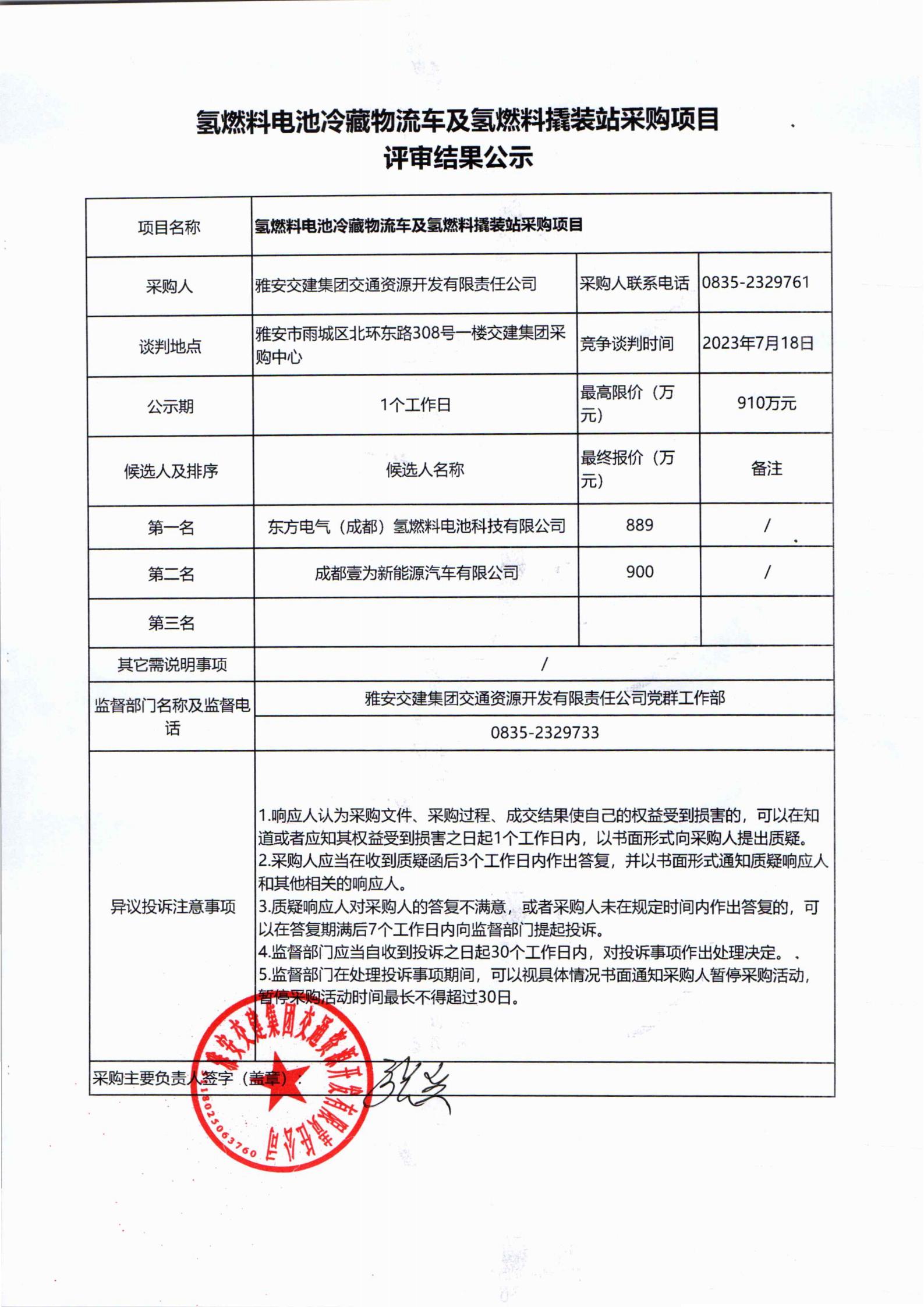 雅安交建集團(tuán)交通資源開發(fā)有限責(zé)任公司氫燃料撬裝站采購項目評審結(jié)果公示