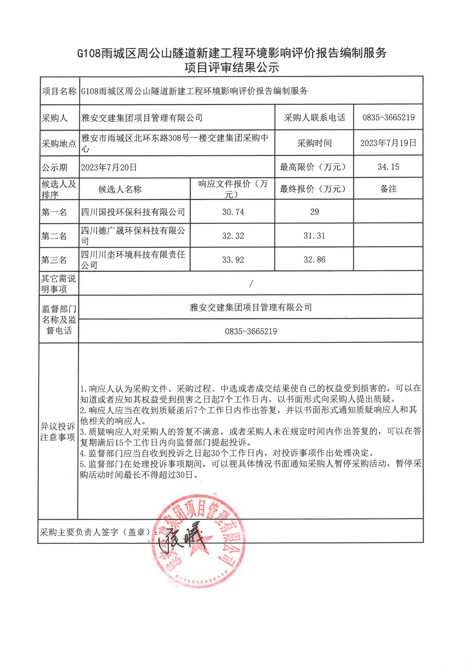 雅安交建集團(tuán)項(xiàng)目管理有限公司G108雨城區(qū)周公山隧道新建工程環(huán)境影響評(píng)價(jià)報(bào)告編制服務(wù)項(xiàng)目評(píng)審結(jié)果公示