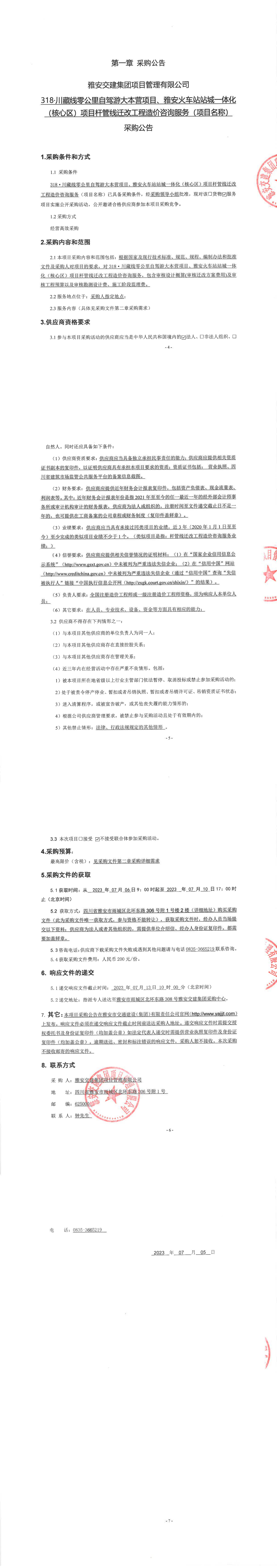 雅安交建集團(tuán)項(xiàng)目管理有限公司318·川藏線零公里自駕大本營項(xiàng)目、雅安火車站站城一體化(核心區(qū))項(xiàng)目桿管線遷改工程造價咨詢服務(wù)(項(xiàng)目名稱)采購公告