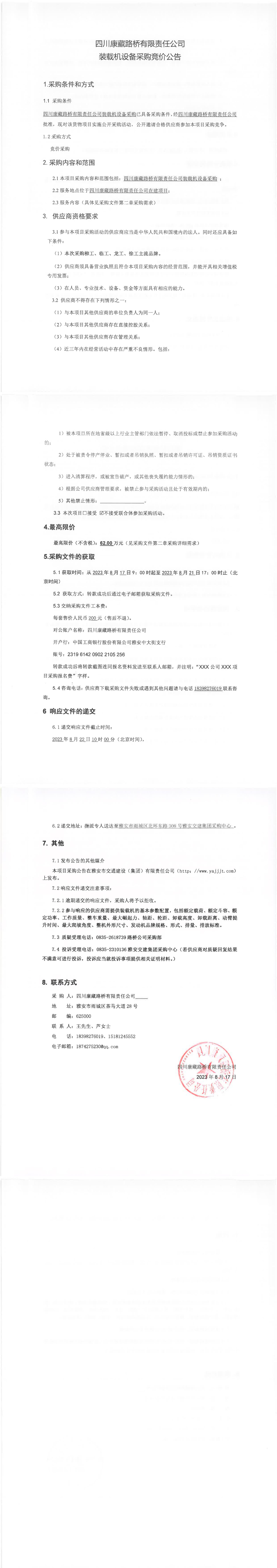 四川康藏路橋有限責(zé)任公司裝載機(jī)設(shè)備采購競價(jià)公告