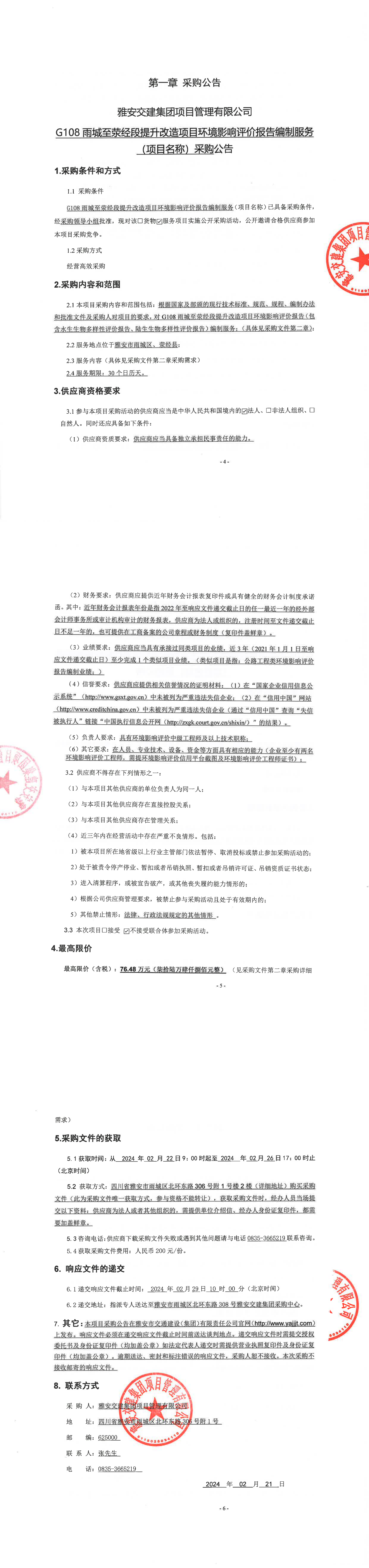 雅安交建集團(tuán)項(xiàng)目管理有限公司G108雨城至滎經(jīng)段提升改造項(xiàng)目環(huán)境影響評(píng)價(jià)報(bào)告編制服務(wù)(項(xiàng)目名稱)采購(gòu)公告