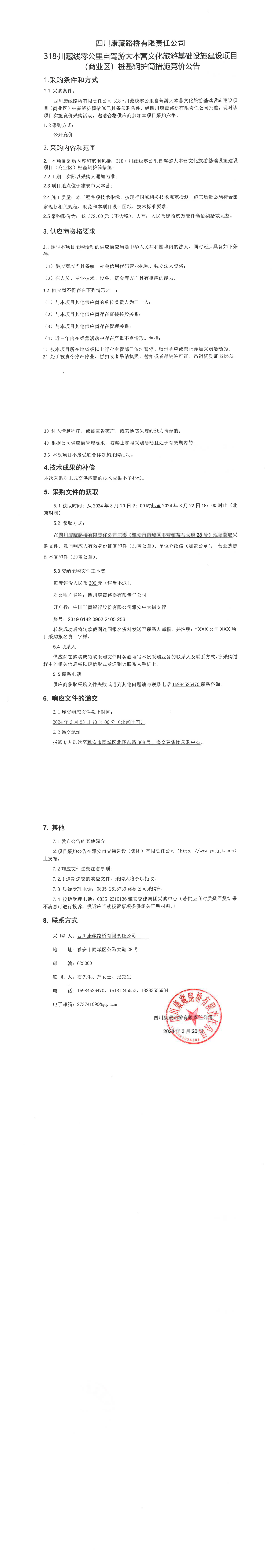 四川康藏路橋有限責(zé)任公司318·川藏公路零公里自駕游大本營文化旅游基礎(chǔ)設(shè)施建設(shè)項目(商業(yè)區(qū))樁基鋼護筒措施競價公告