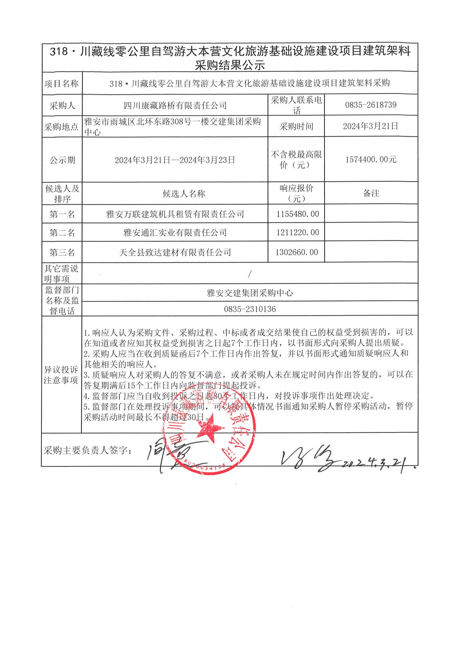 四川康藏路橋有限責(zé)任公司318·川藏線零公里自駕游大本營文化旅游基礎(chǔ)設(shè)施建設(shè)項(xiàng)目建筑架料租賃采購結(jié)果公示