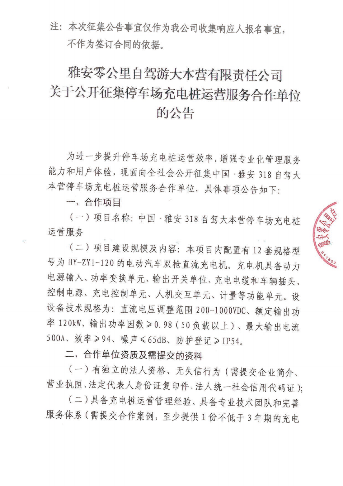 關(guān)于公開征集停車場充電樁運營服務(wù)合作單位的公告