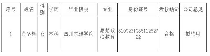 根據(jù)《雅安交建集團(tuán)康居建設(shè)工程質(zhì)量與室內(nèi)環(huán)境污染檢測(cè)有限公司綜合考核聘用工作方案》,按照“公開(kāi)、平等、競(jìng)爭(zhēng)、擇優(yōu)”的原則,經(jīng)考核合格,現(xiàn)將我公司擬聘用人員名單予以公示。