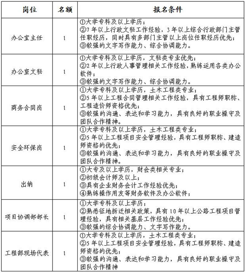 雅安交建集團資產經營管理有限公司是雅安市重點國有企業(yè)雅安市交建集團下屬子公司,主要從事企業(yè)資產經營管理;項目投資;土地整理等業(yè)務。根據公司發(fā)展需要,決定面向社會公開招聘7名工作人員,現將有關事項公告如下: