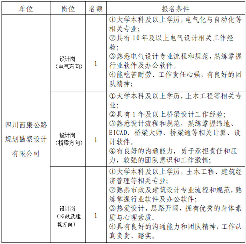 雅安交建集團(tuán)關(guān)于公開招聘所屬子公司工作人員的公告(勘察設(shè)計(jì)公司)