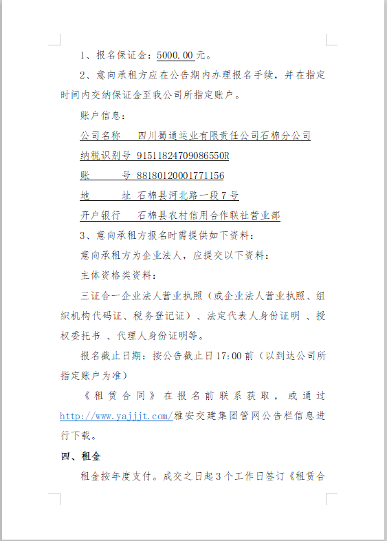 四川蜀通運業(yè)有限責任公司關(guān)于石棉汽車站站內(nèi)商業(yè)門面資產(chǎn)公開招租的公告