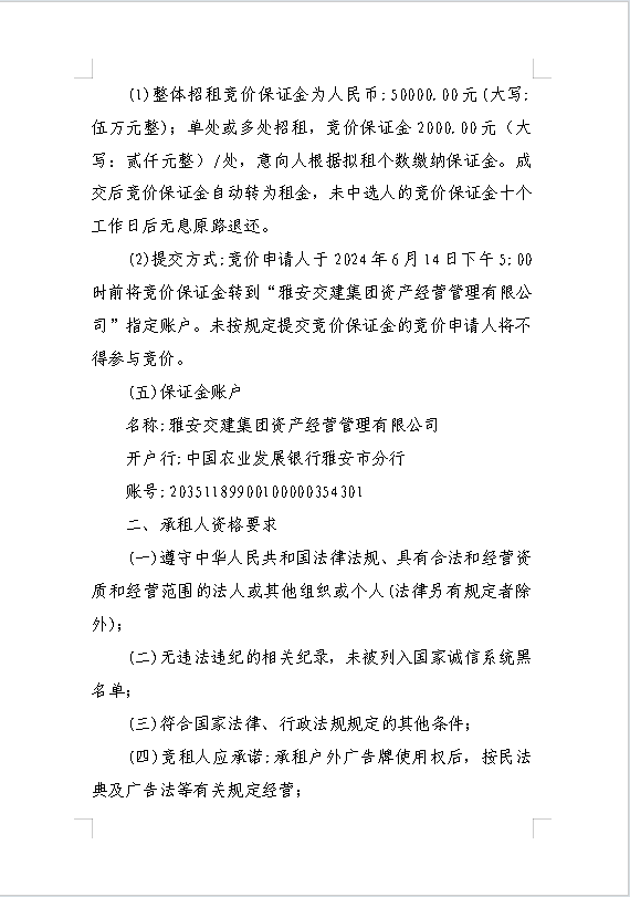 雅安交建集團資產經營管理有限公司關于戶外廣告位競價招租的公告附件