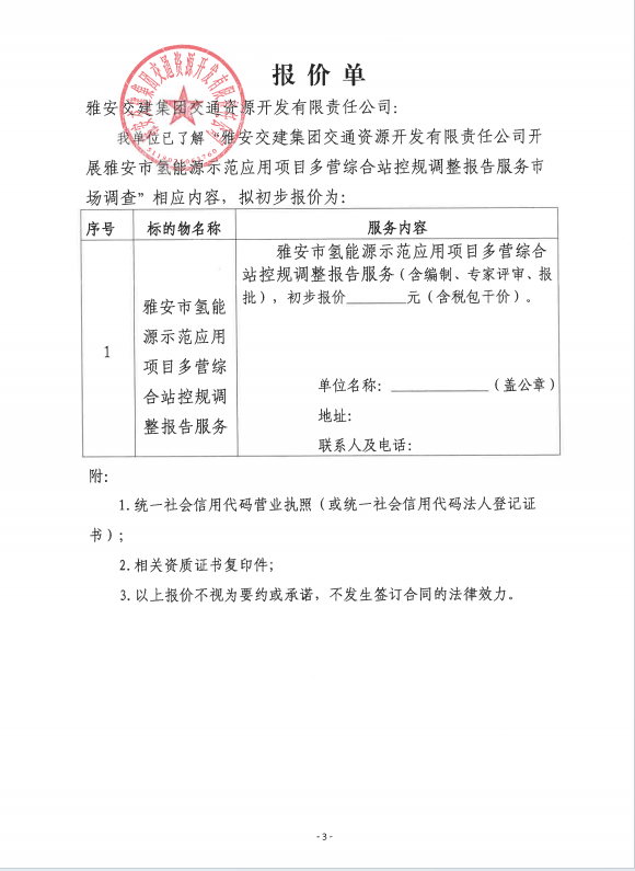 雅安交建集團(tuán)交通資源開發(fā)有限責(zé)任公司雅安市氫能源示范應(yīng)用項(xiàng)目多營綜合站控規(guī)調(diào)整報(bào)告服務(wù)市場調(diào)查公告
