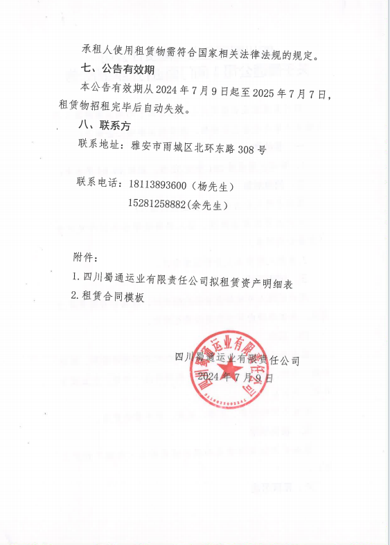 四川蜀通運業(yè)有限責任公司關(guān)于蜀通公司1間門面進行掛網(wǎng)的公告附件