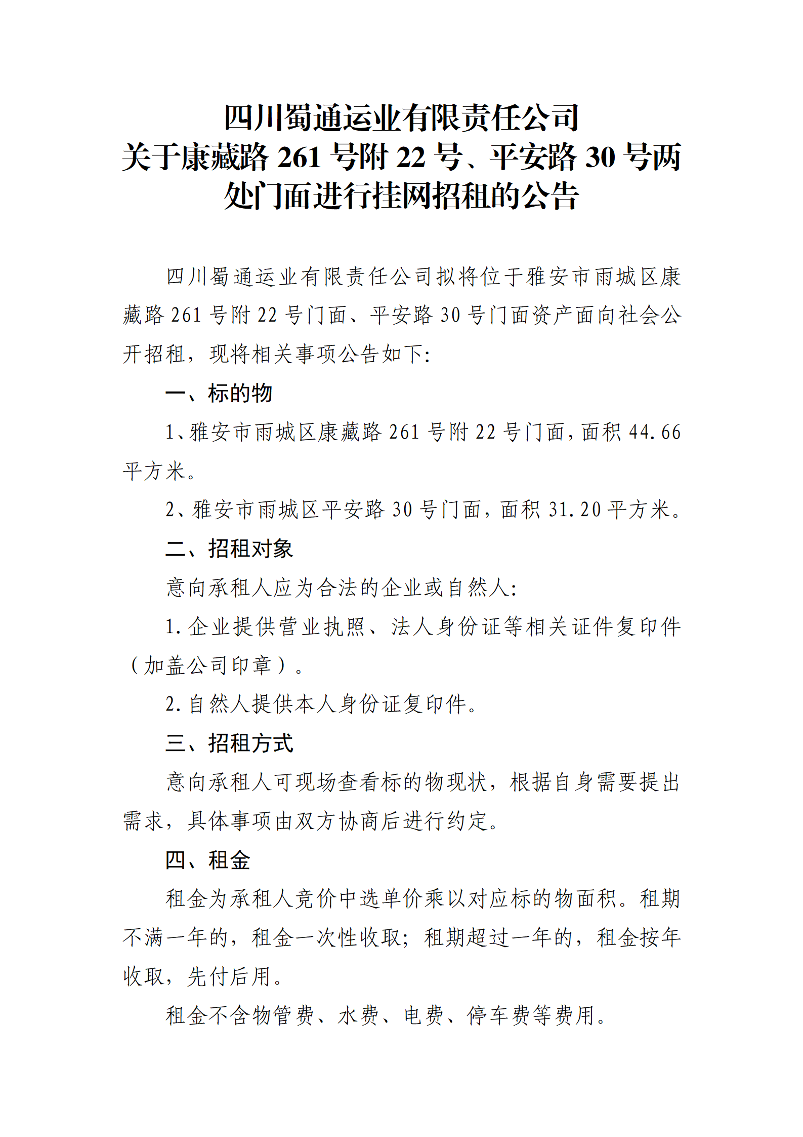 ËÄ´¨Êñͨß\(y¨´n)˜I(y¨¨)ÓÐÏÞØŸ(z¨¦)Èι«Ë¾ êP(gu¨¡n)ÓÚ¿µ²ØÂ·261Ì–(h¨¤o)¸½22Ì–(h¨¤o)¡¢Æ½°²Â·30Ì–(h¨¤o)ƒÉÌŽéT(m¨¦n)ÃæßM(j¨¬n)ÐÐ’ì¾W(w¨£ng)ÕÐ×âµÄ¹«¸æ