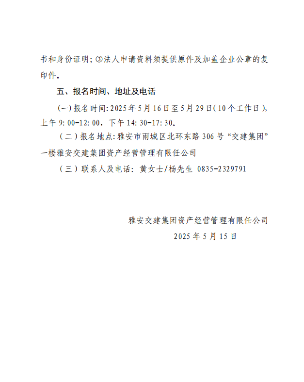 雅安交建集團(tuán)資產(chǎn)經(jīng)營(yíng)管理有限任公司 雨名快速通道(名山服務(wù)區(qū))1、4、5號(hào)樓 配套用房招租公告