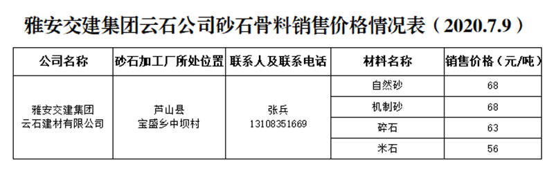 ÑŰ²½»½¨¼¯ˆF(tu¨¢n)ÔÆÊ¯¹«Ë¾É°Ê¯¹ÇÁÏäNÊÛƒr(ji¨¤)¸ñÇé›r±í£¨2020.7.9£©