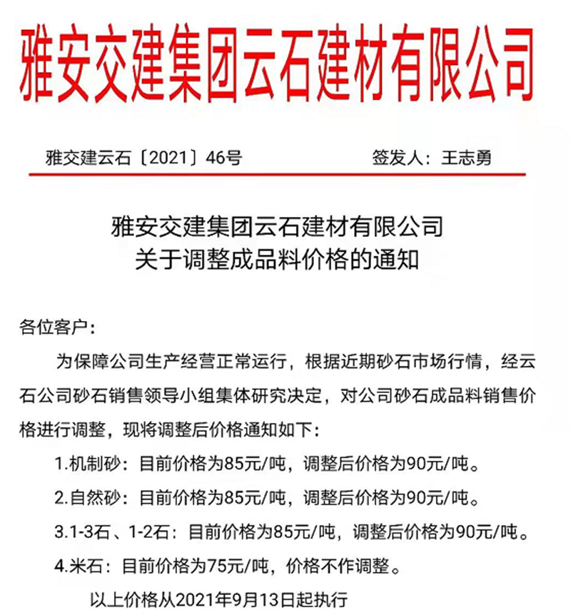 ÑŰ²½»½¨¼¯ˆF(tu¨¢n)ÔÆÊ¯¹«Ë¾êP(gu¨¡n)ÓÚÕ{(di¨¤o)Õû³ÉÆ·ÁÏäN(xi¨¡o)ÊÛƒr(ji¨¤)¸ñµÄ֪ͨ£¨2021.9.13£©