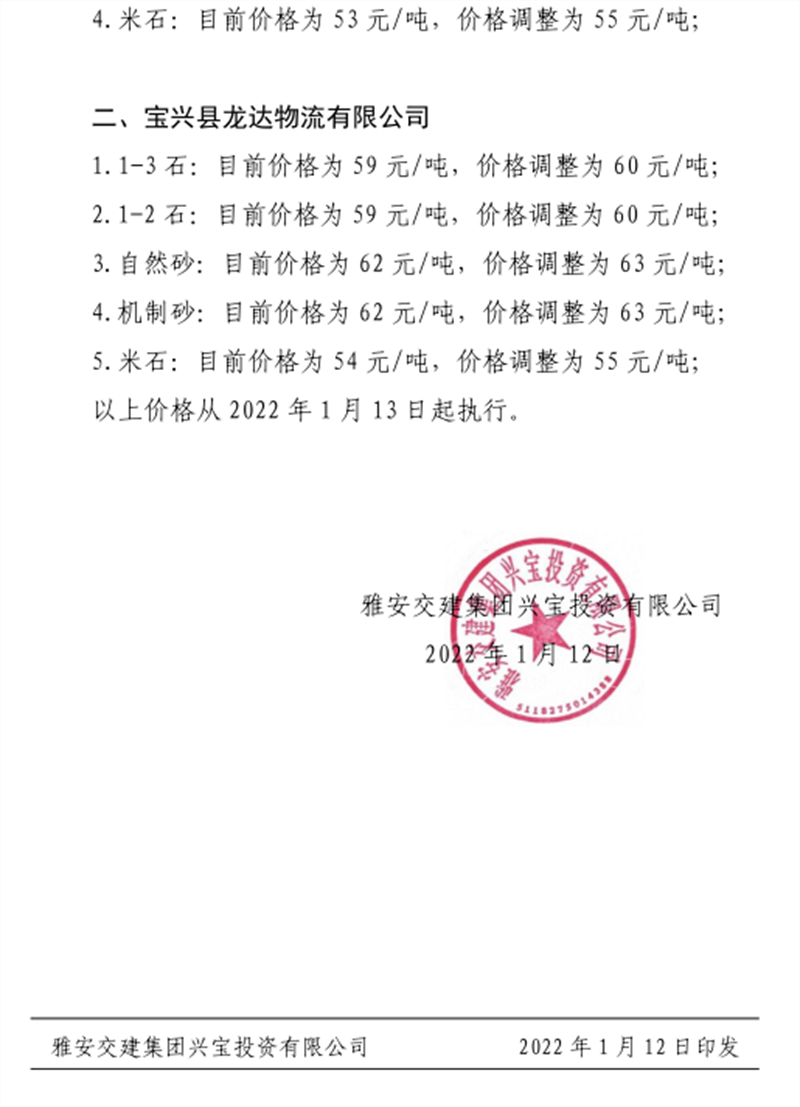 ÑŰ²½»½¨¼¯ˆF(tu¨¢n)µ¤Ê¯¹«Ë¾êP(gu¨¡n)ÓÚÕ{(di¨¤o)Õûɰʯ³ÉÆ·¹ÇÁÏäNÊÛƒr(ji¨¤)¸ñµÄ֪ͨ£¨2022.1.5£©
