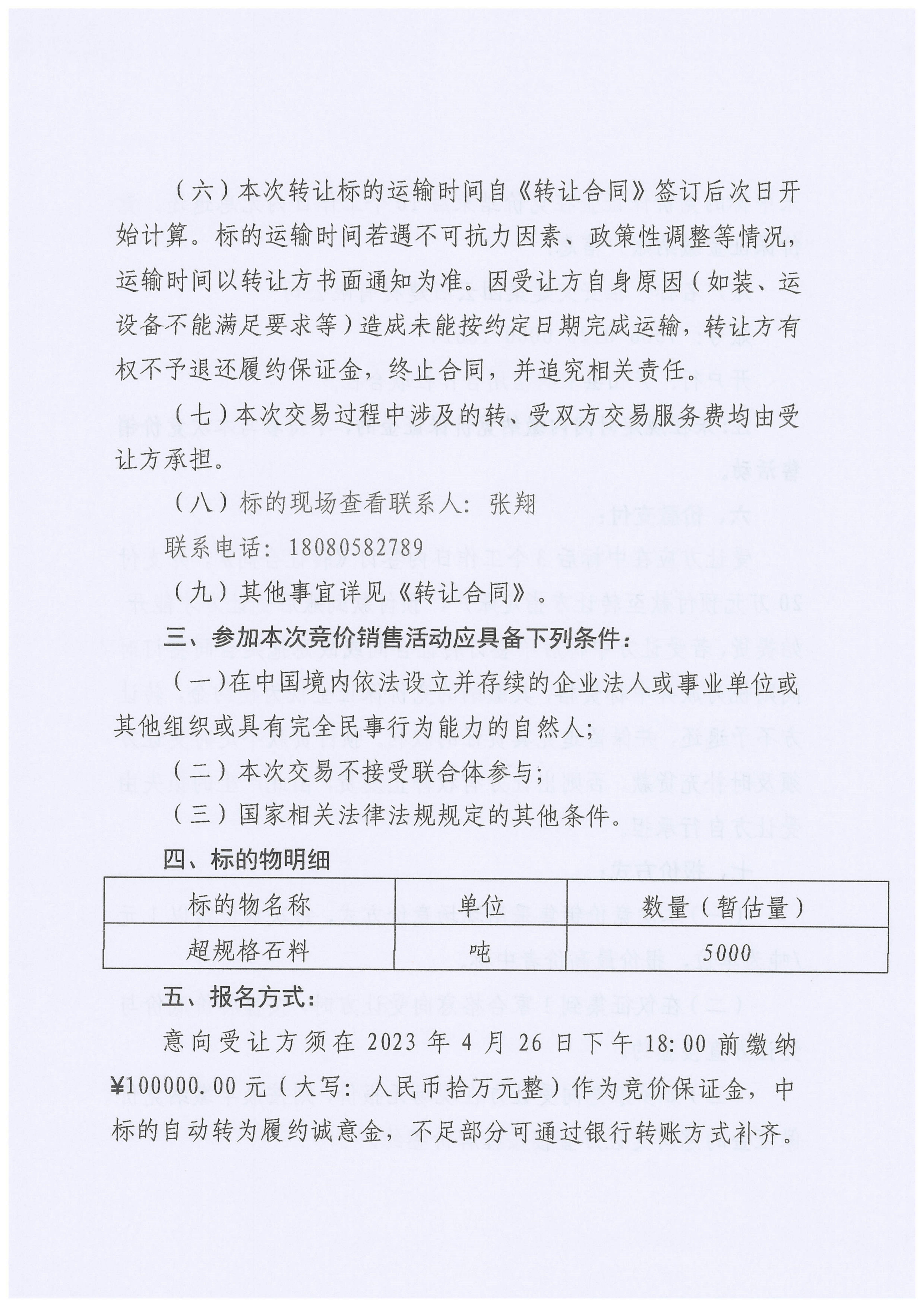 雅交建云石建材有限公司超規(guī)格石料競(jìng)價(jià)銷(xiāo)售公告(2023-4-24)